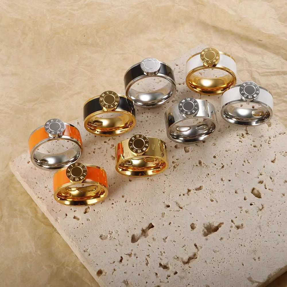 - Style: This exquisite set features a bangle bracelet and matching rings, each designed with a top that can be opened and accented with enamel color. The center top of each piece has a raised circle adorned with Roman numerals, adding a classic and elegant touch. The same design is carried through the rings, ensuring a cohesive and stylish look.