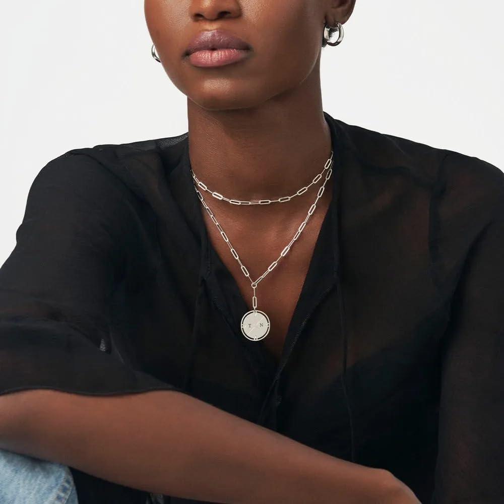 Here's a stylish spin on your fave everyday necklace. It features a chic, round pendant adorned serving as a canvas for your initials. Wear it with your favorite outfit and elevate your look for any occasion.