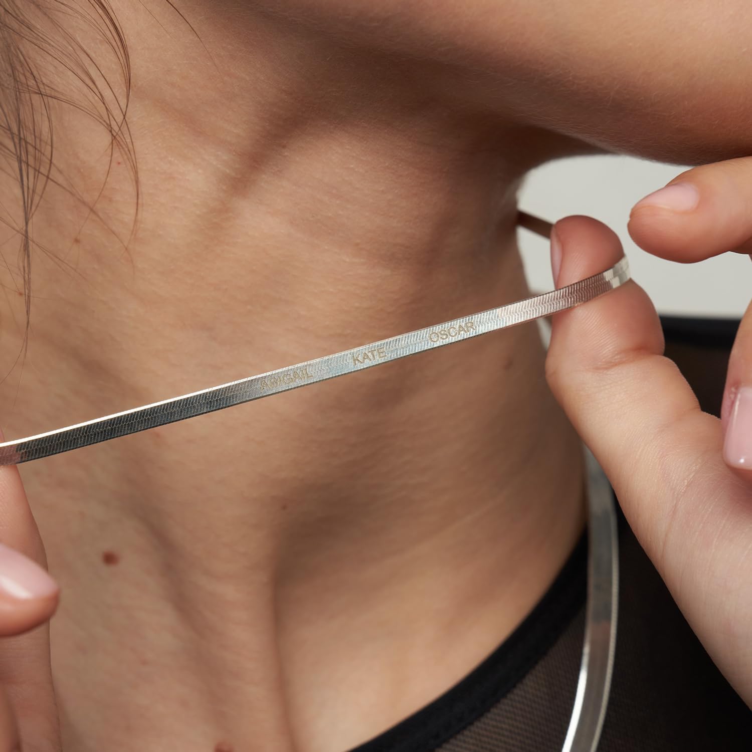 - Jewelry Care Tip: Herringbone chains are delicate and elegant, which means tugging or pulling can damage them. To ensure you enjoy your necklace, be careful, gentle and avoid wearing it while exercising, sleeping, or showering.