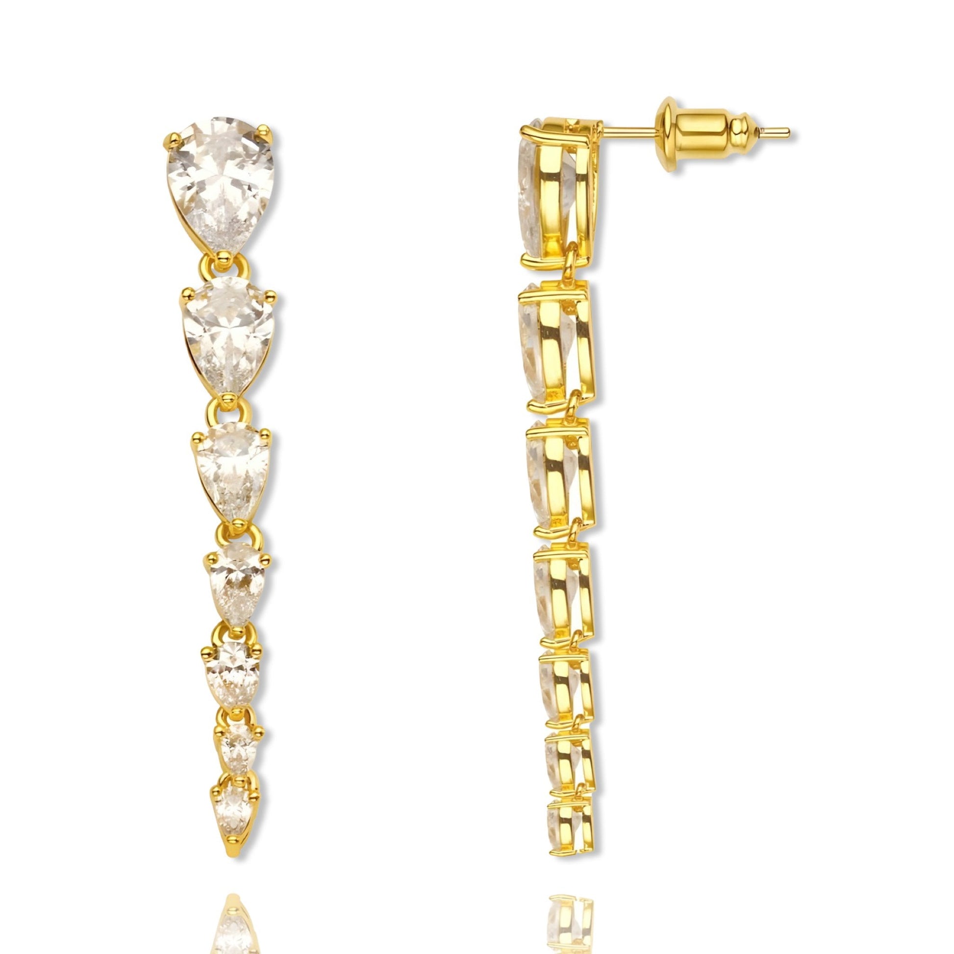 A cascade of graduated pear shape diamonds.