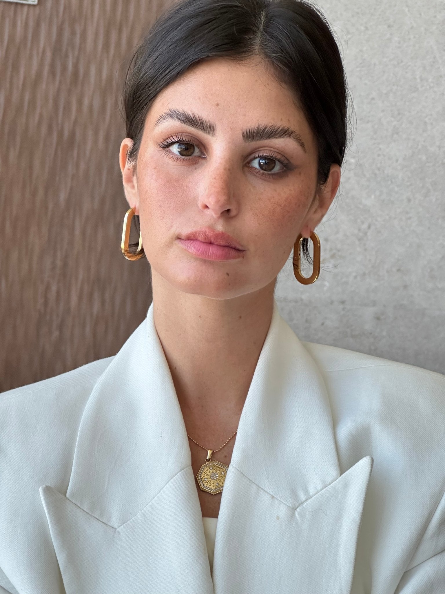 Timeless, elegant, and effortlessly stylish—these Single-Link Hoop Earrings are the perfect addition to your jewelry collection. Their modern, minimalist design makes them a versatile statement piece, perfect for both casual and formal occasions. Lightweight and comfortable for all-day wear, these bold yet refined earrings add a touch of understated luxury to any outfit.
