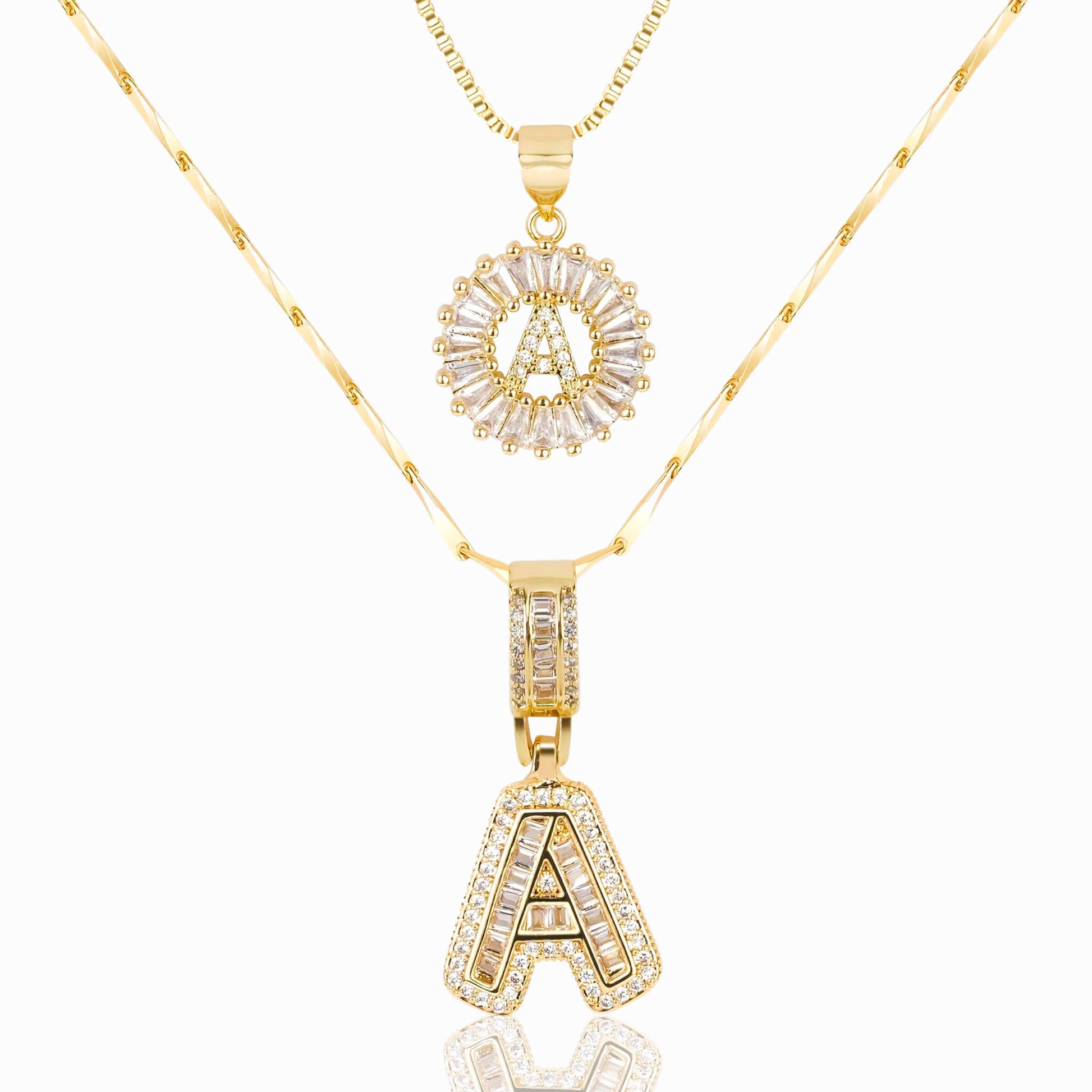 14k Diamond Initial Necklace Set - The Signature Duo Set